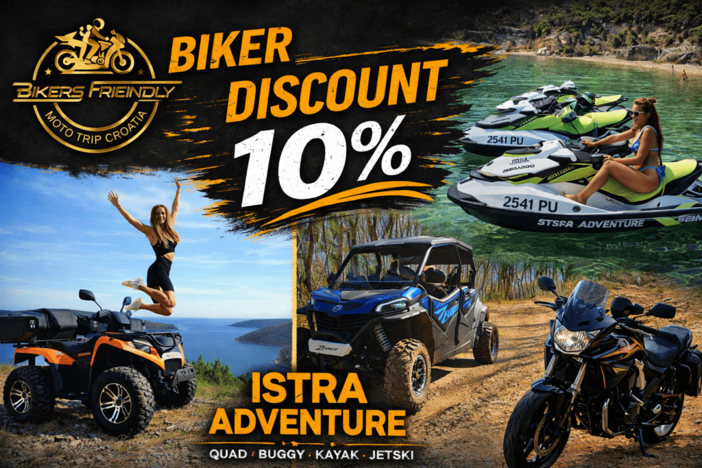 Za motocikliste smo Biker-friendly lokacija – osiguravamo privatni parking za više motocikala, a svim bikerima odobravamo 10% popusta na naše ture.