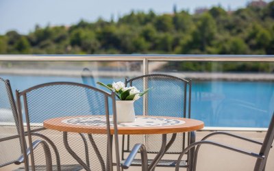 Gostima su osim hotelskih soba, apartmana i deluxe soba na raspolaganju prekrasni vanjski bazeni otvoreni u ljetnom periodu, Restaurant Perla i Snack Bar sa spektakularnim pogledom na Rogoznicu gdje možete uživati u vrhunskim ribljim i mesnim delicijama našeg kuhara, te koktelima  i osvježavajućim pićima u našem Baru.