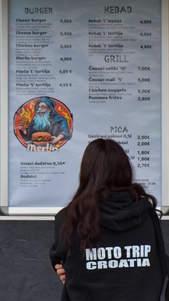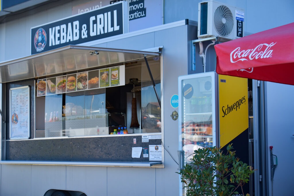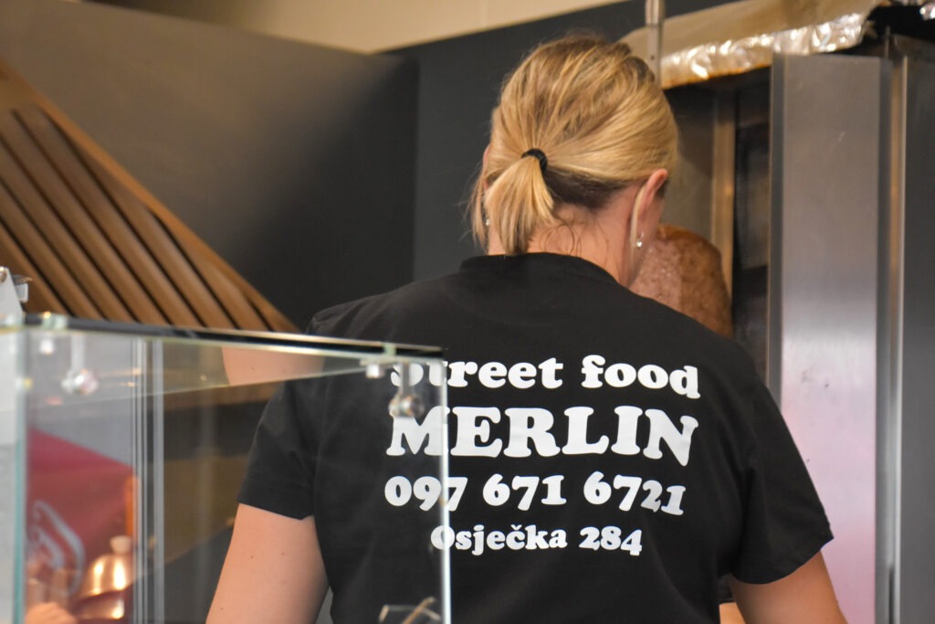 Street food Merlin je smješten na istočnom dijelu Slavonskog Broda ispred glavnog ulaza u trgovački centar SuperNova.