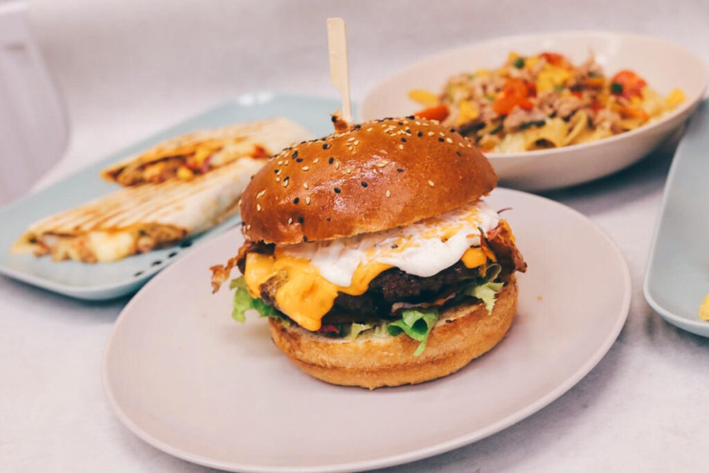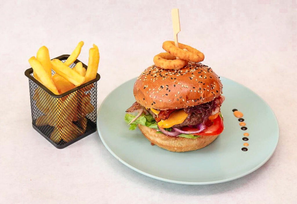 Naša ponuda uključuje širok spektar jela koja će zadovoljiti različite ukuse. Posebno smo ponosni na naše Black Angus burgere, pripremljene od pažljivo birane junetine koja je odležala 28 dana metodom ‘dry ageing’. Uz burgere, nudimo i raznovrsne roštilje, wrapove, sendviče te mnoge druge delicije koje možete pronaći u našem jelovniku.