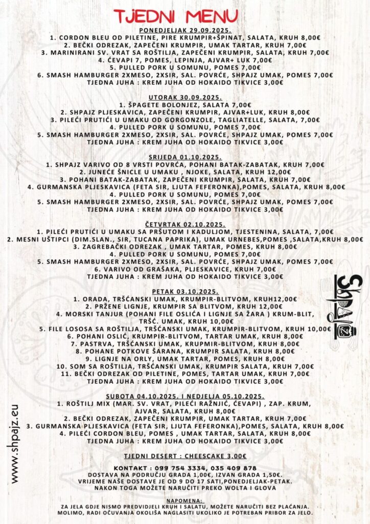 U Shpajzu vjerujemo da hrana nije samo potreba, već i užitak koji okuplja ljude i stvara nezaboravne trenutke. Zato svaki naš recept nosi jedinstveni pečat kreativnosti i tradicije. Bez obzira dolazite li na ručak s obitelji, poslovni sastanak ili jednostavno uživati u ukusnom burgeru, želimo da svaki posjet Shpajzu bude poseban doživljaj.