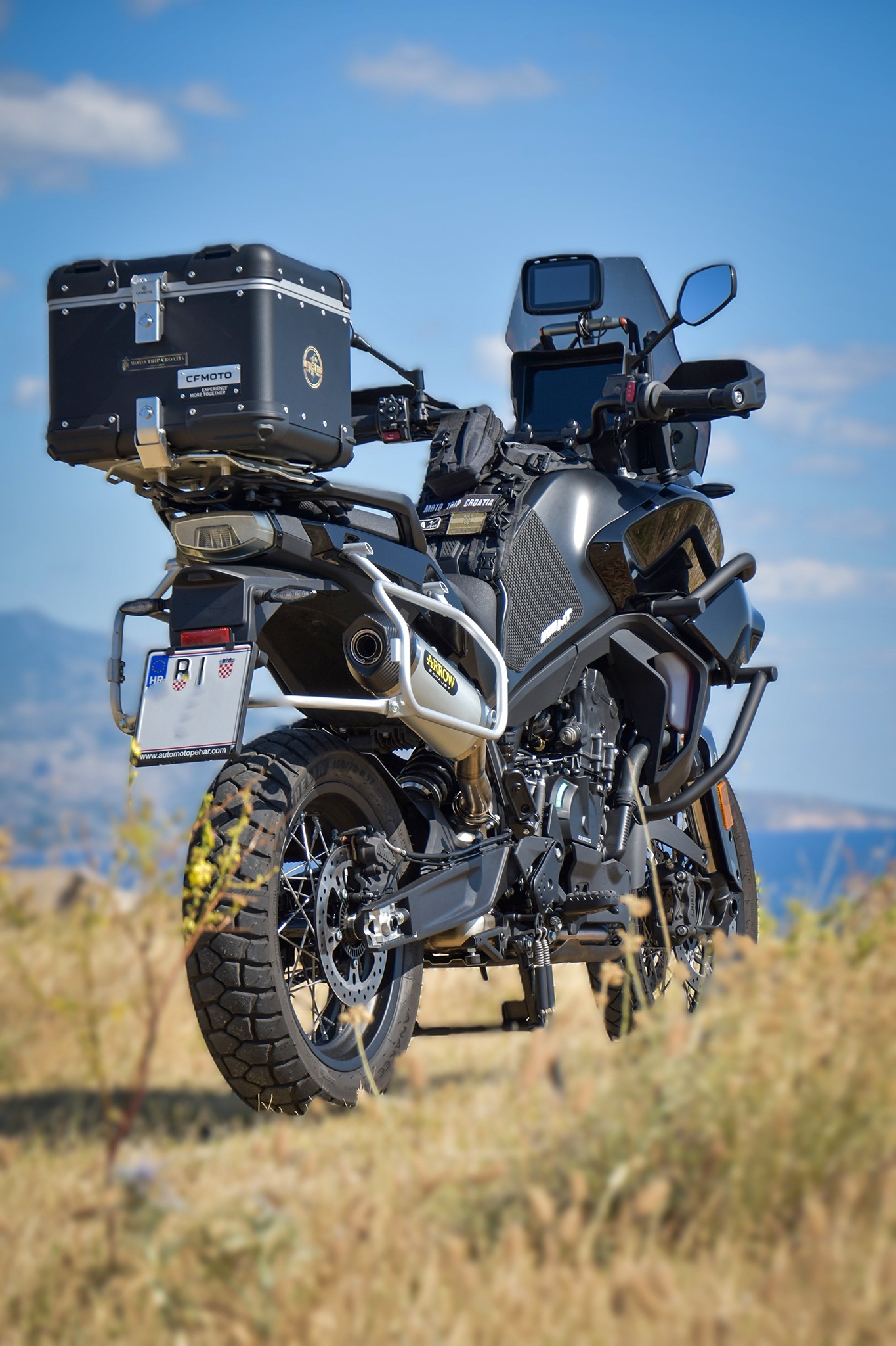 Gdje japanski modeli često nude preciznost, ali su tvrđi i suzdržaniji, CFMOTO nudi više udobnosti. Ovjes odlično upija neravnine, a elektronika (TFT, modovi, cornering ABS) radi besprijekorno. Snage ima dovoljno – i više nego što treba za putovanja s koferskim setom (orginalno je oko 91 KS a sada nakon par intervencija sa smjesom goriva, protočnim filterom i drugim ispuhom negdje oko 100 KS).